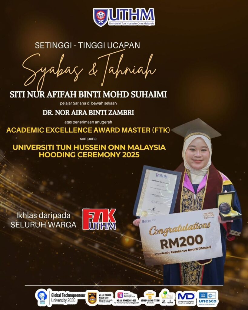 Semoga kejayaan ini menjadi pemangkin motivasi kepada seluruh warga FTK untuk meneruskan budaya kecemerlangan akademik dan profesional.