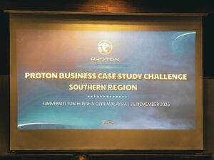 Tahniah diucapkan kepada Kumpulan Hussein Onn FD atas kejayaan meraih tempat ketiga dalam Proton Business Case Study Challenge 2025 (Zon Selatan) yang berlangsung pada 26 November 2025 di UTHM.